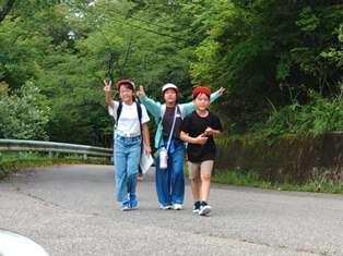 | 昼食を食べ終わり、元気いっぱいウオークラリーを班の仲間と楽しく歩きました。 |