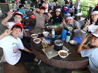 | 野外炊飯を行い、カレーをおいしくいただきました。すべてのプログラムを終え、退所式を行いました。 |