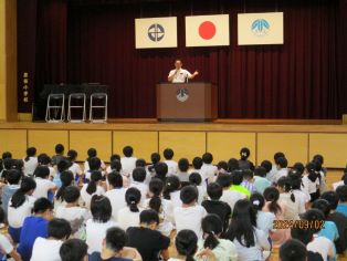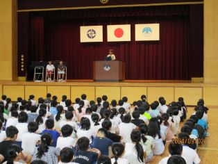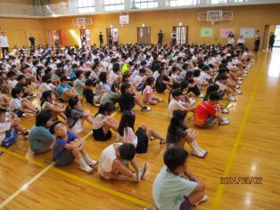 | 夏休みが終わり、集会を行いました。久しぶりに会う友達と夏休みの思い出を楽しそうに話す明るい声であふれていました。 | |||