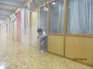 | 避難訓練を行い、真剣に取り組む表情が見られました。3年生はスモーク体験も行い、煙の中での避難方法を体験的に学びました。 | |||