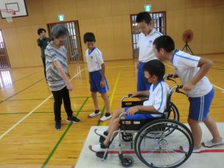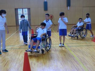| 5年生が福祉実践教室を行いました。視覚障害や車いすを体験する機会になりました。 | |||
