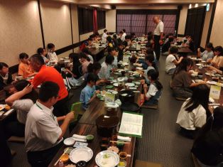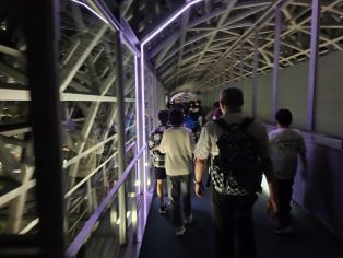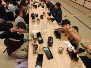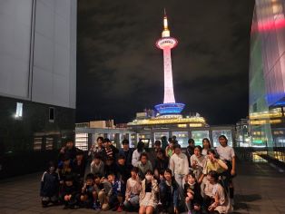 | 班別での研修を終え、夕食を食べました。その後、京都駅のスカイウォークで夜景を楽しみました。 |