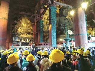 | 修学旅行2日目がスタートしました。元気に朝食を食べ、奈良に向かいます。東大寺の大仏の大きさに圧倒されました。 |