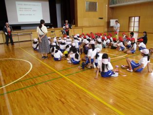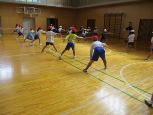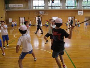 | 3年生が棒の手体験を行いました。講師の先生の指示を守って、元気よく活動することができました。 |