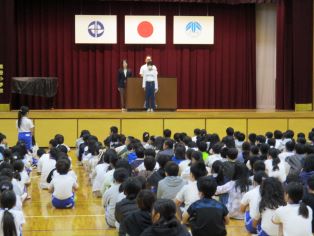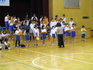 | 後期の始業式を行いました。後期の抱負を5年生の代表児童がしっかりと発表しました。 |