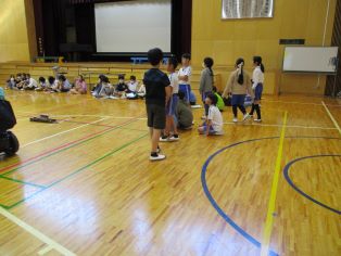 | 5年生がボッチャを体験しました。いろいろな人が楽しめるスポーツについて知る機会になりました。 |