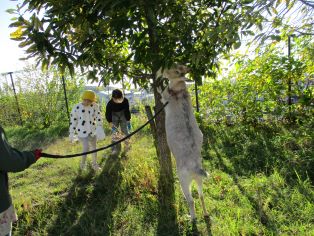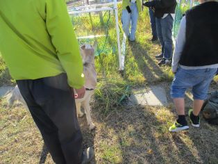 | ヤギのライくんがまた来てくれました。今回は環境委員会と一緒にグラウンドの除草作業を行いました。 |
