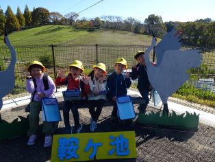 | 1年生が校外学習で鞍ヶ池公園に出かけました。生き物を大切にすることや公共のマナーを学習する機会になりました。 |