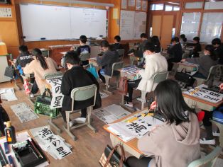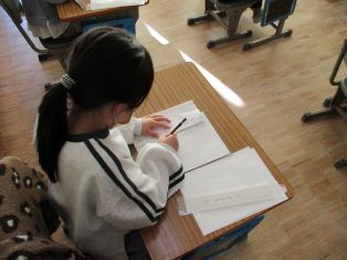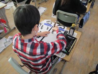 | 校内書き初め大会を行いました。1・2年生は硬筆、3〜6年生は毛筆で一画一画を丁寧に書くことができました。 |