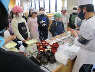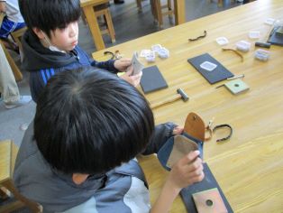 | 6年生がものづくり出前授業を行いました。家具製作、和菓子製造、印章篆刻に分かれてものづくりを体験しました。 |