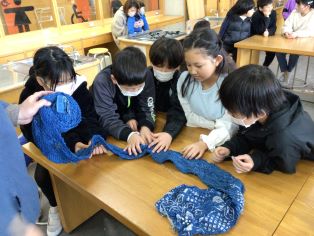 | 4年生が有松絞りを体験しました。伝統工芸品の歴史を知り、ハンカチ絞りを体験することができました。 |