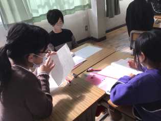音楽科の学習では、「曲の感じをつかんで歌おう」というめあてで学びました。曲「思い出のメロディー」を聴き、曲想が変わる「ア」「イ」「ウ」について、どんなところから、どう感じたのかを出し合いました。みんなで出し合ったことを共有し、それを生かして歌いました。(右) |