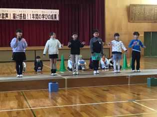 3~6年生は、目の前に他の学年の子がいることで緊張する子もいましたが、練習の成果を発揮しようとがんばっていました。1・2年生は感染それぞれの学年で互いの発表を見合いました。