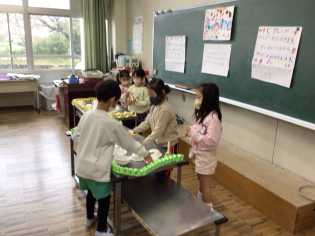 今日は、拡大防止のため、体育館に全校児童が集まってのオープニングやエンディングは行いませんでしたが、各学年の見どころを発表する「コマーシャル」をリモートで行うなど予定を変更して行いました。全校のすばらしい歌声は、当日の楽しみにとってあります♪ オープニング後は、各学年フロア(6年生はホール)でみどりっ子フェスタの校内発表を行いました。