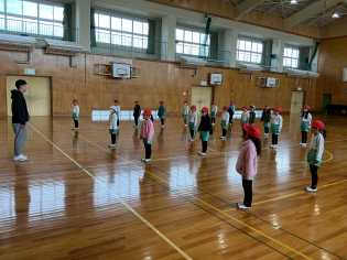 冷たい空気に包まれた体育館では、1年生の元気な声が響いていました。
