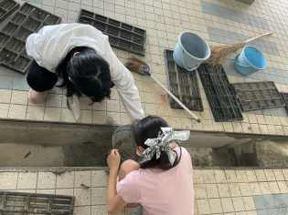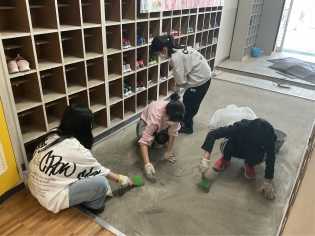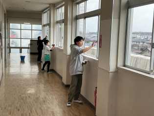 普段は手が届かないのであきらめていた窓の高いところや、昇降口の溝の中、数えきれないくらい歩いた廊下など、6年間の思い出に浸りながら隅々までピカピカにしていました♪