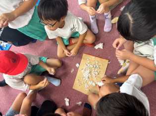 この日は地域の方から提供していただいた、とうもろこし🌽のタネまきました。128穴トレイに一粒ずつ入れたら、「芽が出ますように」とみんなでおまじない。